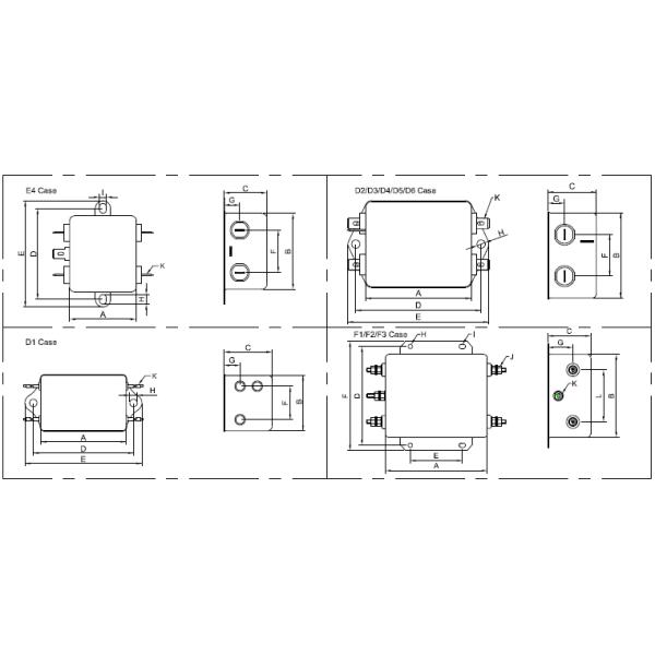 | Case | E3 | E4 | D1 | D2 | D3 | D4 | D5 | F1 | F2 | F3 | F4 | Tolerances | ||||||||||||||||||